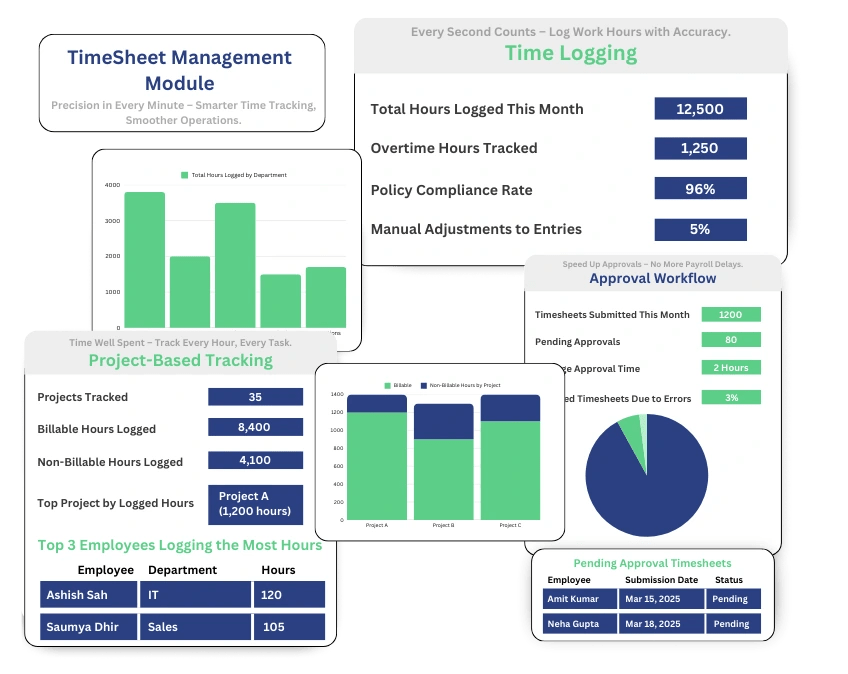 Tracking work hours shouldn’t be a guessing game. IVPHUB’s TimeSheet Management ensures every minute worked, is logged, reviewed, and processed with precision. No more chasing down timesheets or dealing with payroll discrepancies—employees can log their hours with ease, managers can approve with confidence, and HR can process payroll without second-guessing.